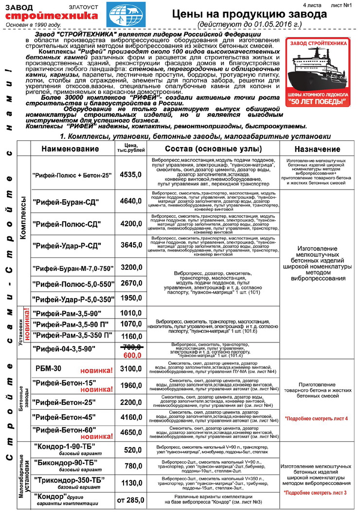 Новые цены на Оборудование Рифей и Кондор